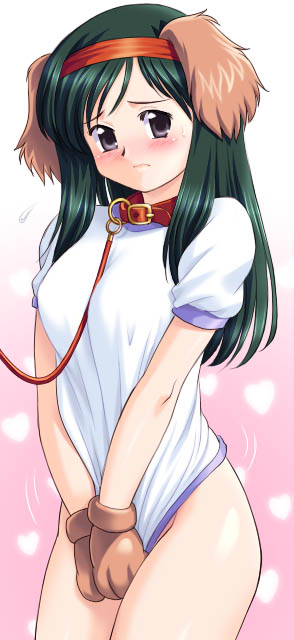 | 2005年度たぬき学園体育祭では男女生徒による『わんわん競走』が始まっていたのですが、紅組ブースではなにやらもめているようです…… 「ほ、ホントにこの格好で出なきゃならないんですの?!」 悲鳴にも近い大きな声を上げていたのは、1年6組の大河原 笙子さんでした。 |